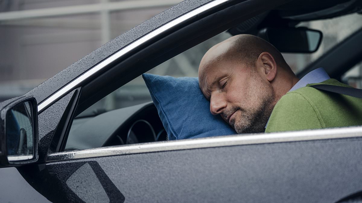 A man soundly asleep in his car. This is permitted in Arizona, but only in certain areas and parking lots
