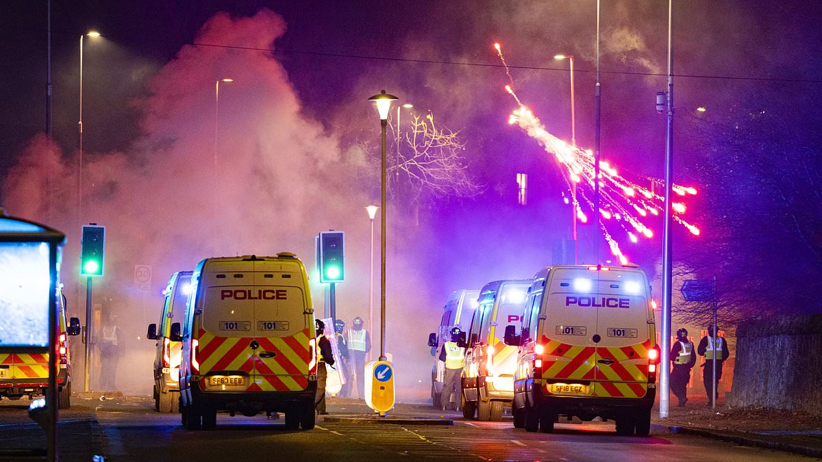 Riot Police in Niddrie, Edinburgh, last year as fireworks, rocks and glass bottles werethrown at them