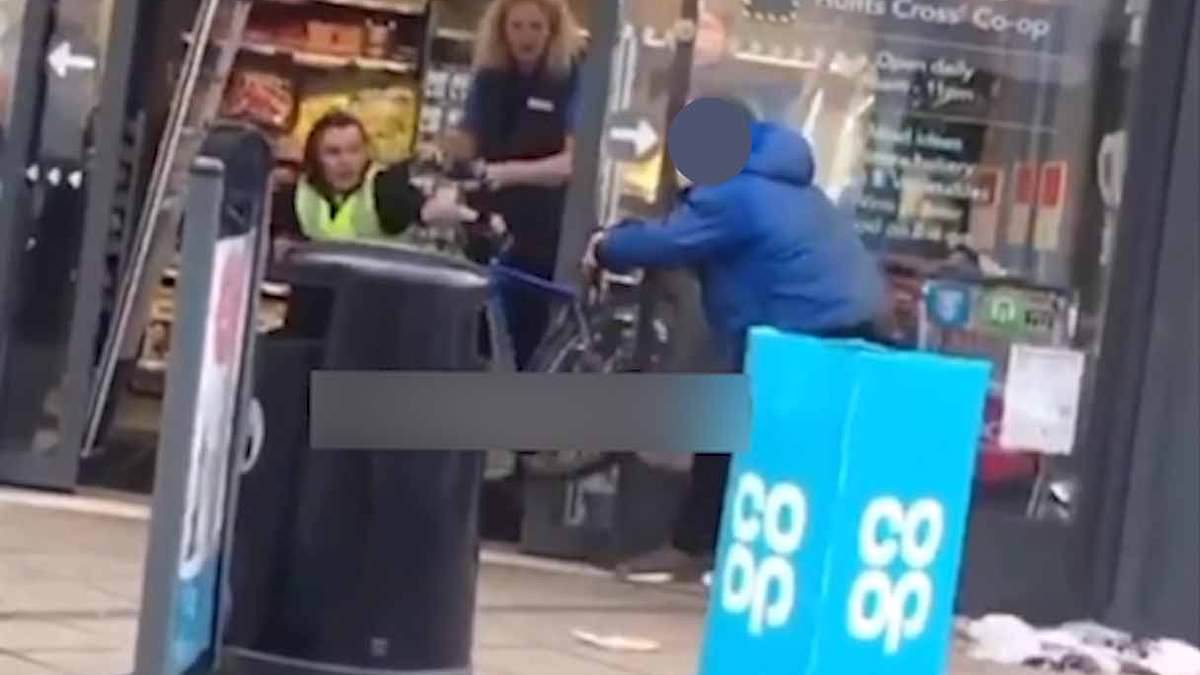 Terrifying footage shows a machete-wielding gang robbing a Co-op store in London in February 2024