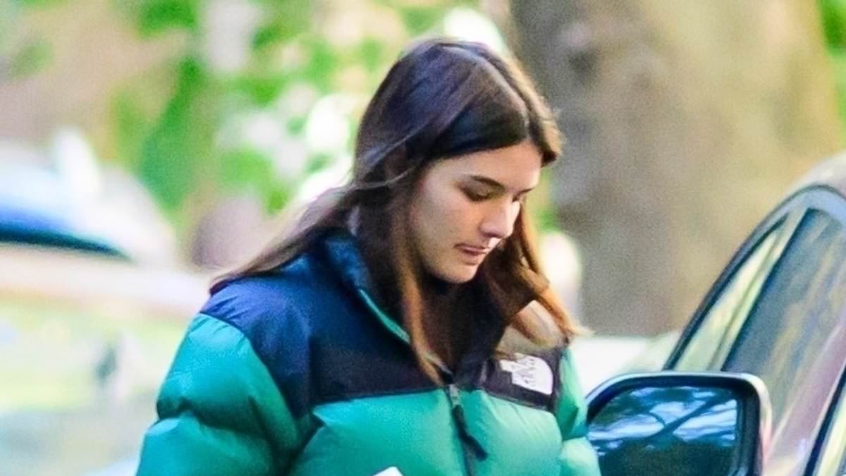 Suri, who’s a student at Carnegie Mellon University in Pennsylvania, kept warm in a green and navy puffer jacket, blue sweats, and brown UGG slippers.