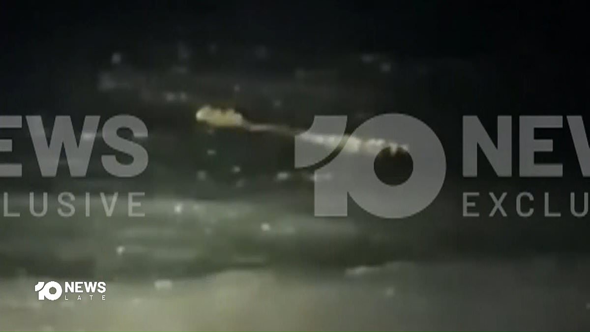 In a shocking video, a crocodile is seen retreating into the water after launching a nighttime attack on a camper at a beach in Western Australia.