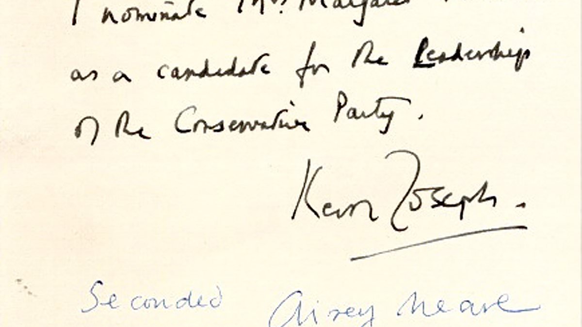 On the slips signed by Joseph and Neave, Mrs Thatcher signed her name and wrote: ‘I consent to be nominated’.