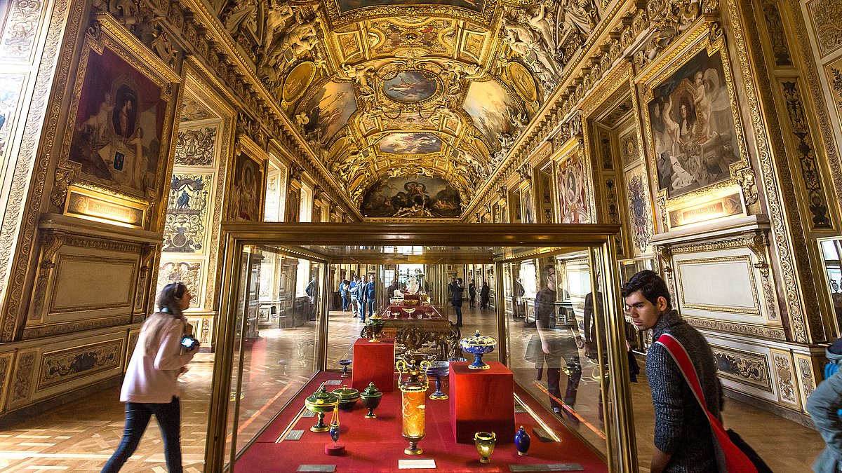 The Galerie d’Apollon, scene of the extraordinary heist which on Sunday morning saw a group of four thieves walk away with £76million-worth of France’s crown jewels.