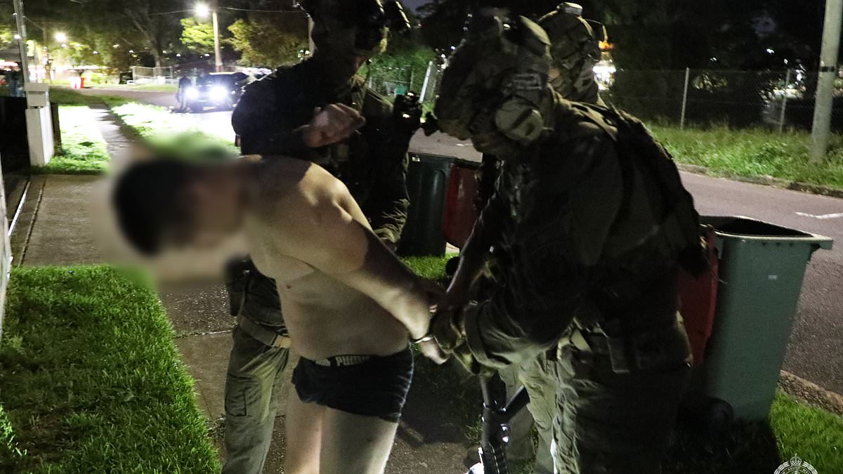 The 23-year-old suspect, whose identity has not been disclosed, was taken into custody at a residence in Seven Hills, located in Sydney’s western suburbs. The arrest occurred around 6:30 a.m. on Wednesday. The man was led out of the house in his underwear, hands cuffed securely behind his back.
