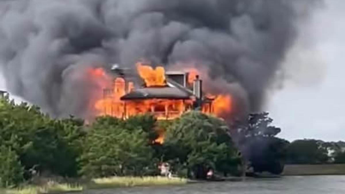 Smoke was seen billowing from the structure on the video, as the fire roared throughout all three stories of the home.