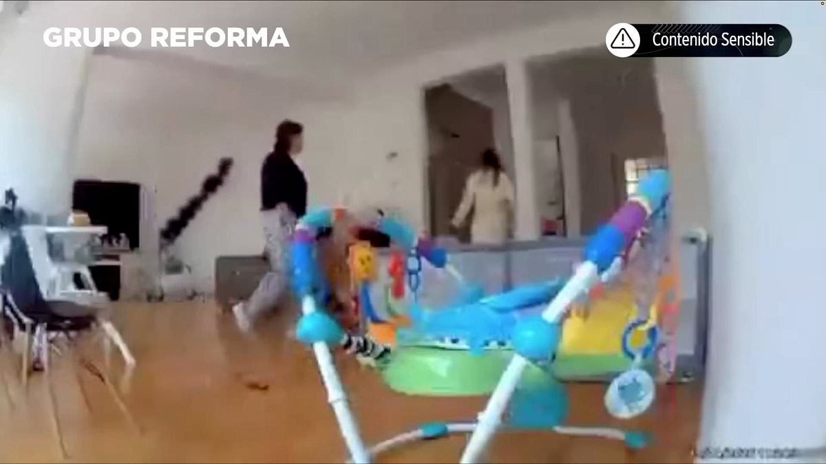 Just seconds after his wife was killed, Alejandro walked into the frame of the video while carrying their eight-month-old baby, asking his mother in Spanish: ‘What was that? What crazy thing did you do?’