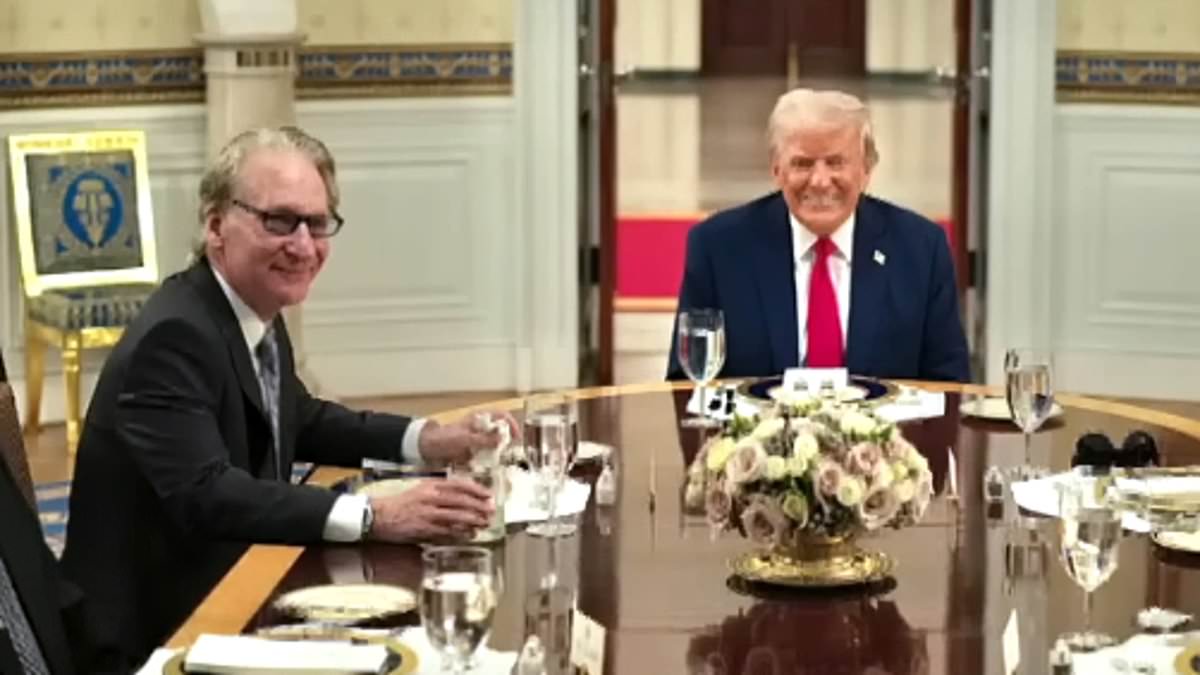 Bill Maher is pictured in April at a dinner table in the White House with President Donald Trump, Kid Rock and UFC owner Dana White