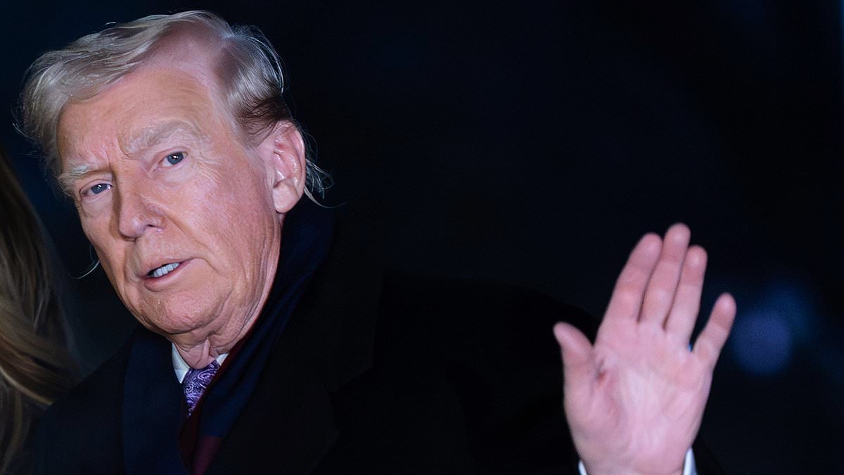 President Donald Trump waves to the media as he holds hands with first lady Melania Trump as they walk on the South Lawn upon his arrival at the White House, Sunday, Nov. 30, 2025, in Washington