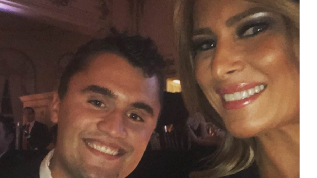 First Lady Melania Trump poses with writer Charlie Kirk on New Year's Eve at Mar-A-Lago in 2018