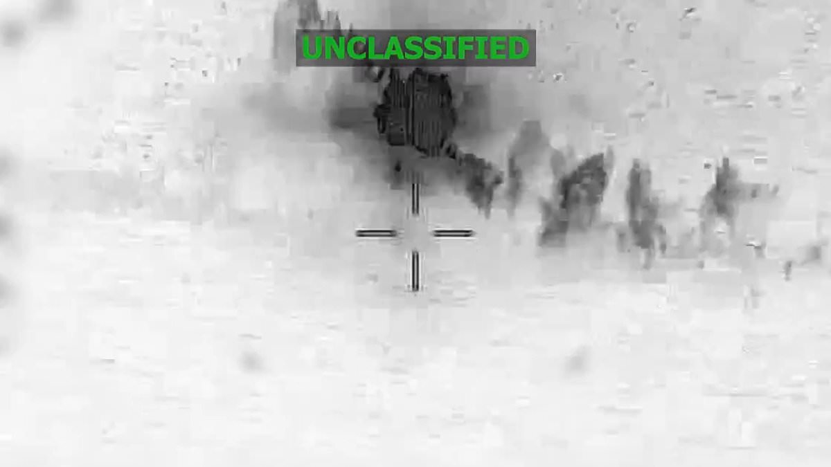 Remarkable video footage captures the dramatic moment the vessel was destroyed, sending thick clouds of smoke into the sky over the open sea.