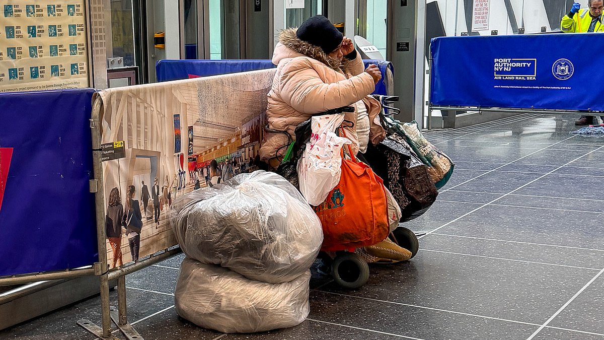 At New York City’s John F. Kennedy International Airport (JFK), one of the first sights greeting travelers is the presence of homeless people near the public transportation area.