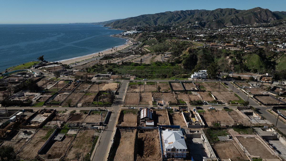 Cleared lots sit next to homes being rebuilt in the Pacific Palisades neighbourhood of Los Angeles