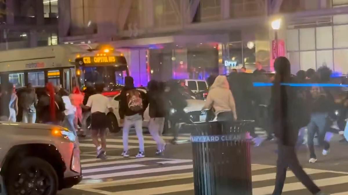 The teens were peaceful at first, but as the night progressed the, ‘group began engaging in fights and disrupting the flow of traffic, repeatedly ignoring instructions to remain on the sidewalks.’
