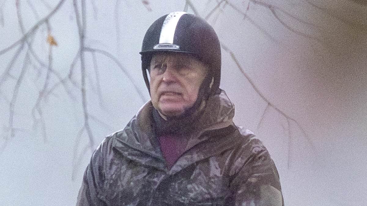 Andrew Mountbatten-Windsor rides in the rain in Windsor Park earlier this week
