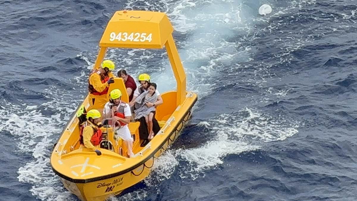A rescue crew went to recover a father and daughter from the ocean after the daughter fell off a Disney cruise ship and her father jumped in to save her