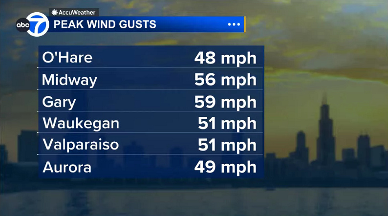 According to ABC7 meteorologist Greg Dutra, wind gusts reached nearly 60 miles per hour in areas like Gary and around Midway Airport, exemplifying the day’s turbulent weather.