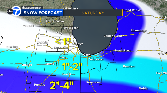There may be a dusting to less than 1 inch of snow in the city. South of I-80, a couple of inches of snow could accumulate during the daytime hours on Saturday.