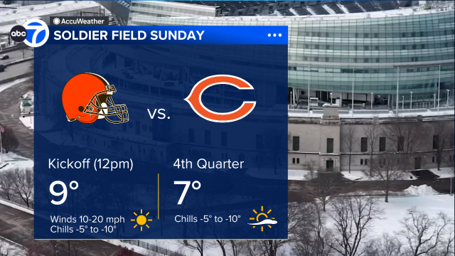 Sunday morning, ahead of the Chicago Bears game at Soldier Field, will be the coldest part of the weekend.
