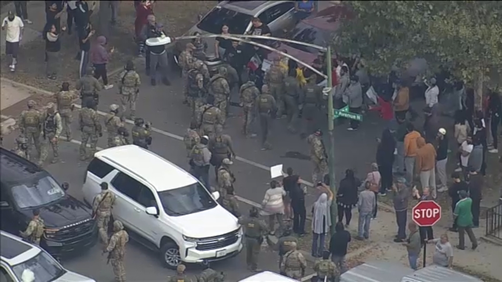 Chopper 7 surveyed the area around 12:10 p.m., where numerous Chicago police vehicles and Border Patrol agents were gathered on South Avenue N’s 10500 block.