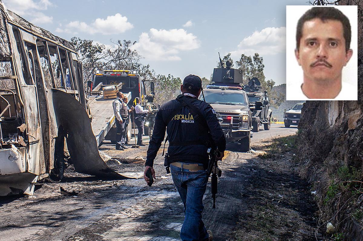 Narco gangs went on a rampage after news of El Mencho’s death circulated. Cartel henchmen blockaded highways with roadblocks, set cars ablaze and torched businesses as part of their retaliation over the crime boss’s death.