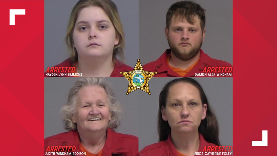 Arrested and held at the Nassau County Jail & Detention Center are Hayden Simmons, 21, Damien Windham, 21, Erica Foley, 45, and Judith Addison, 79, who are described as permanent residents of the household.