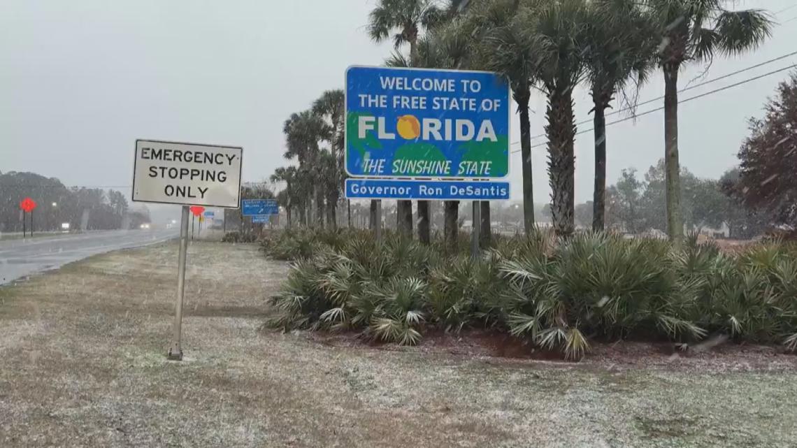 FLORIDA, USA — Snowfall graced parts of the Florida Panhandle early Sunday morning, marking a rare occurrence for the Sunshine State. Interestingly, this unusual weather event has repeated itself for the second consecutive year.
