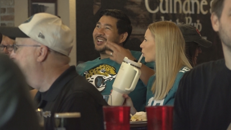 JACKSONVILLE, Fla. — On Sunday morning, Jaguars fans rose early, gathering to support their team as they took on the Los Angeles Rams in London.