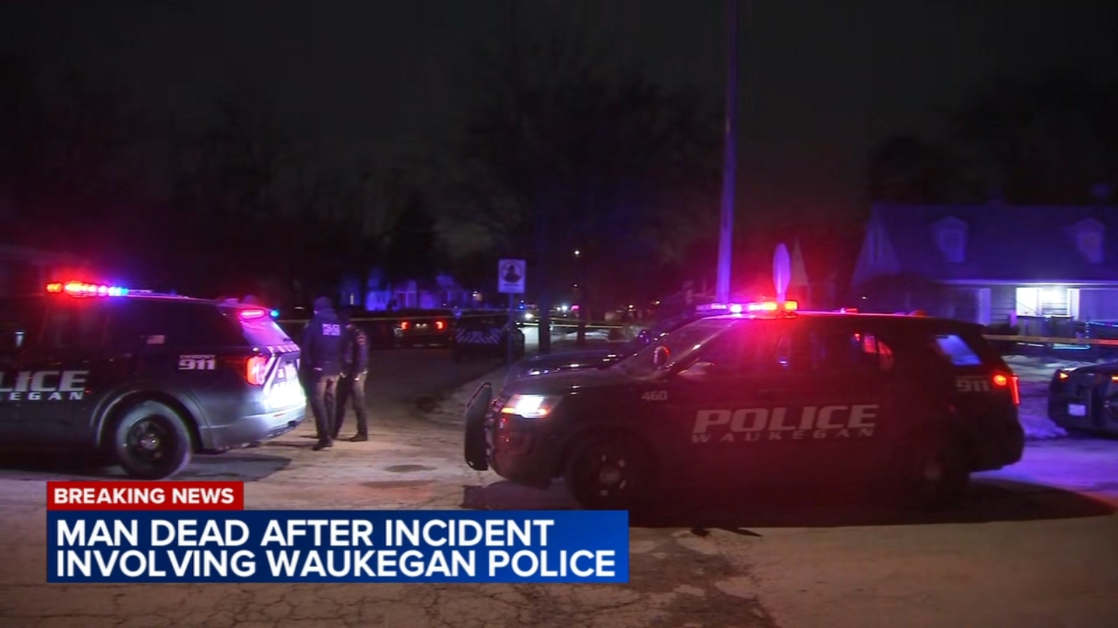 Crime tape was wrapped around several homes. ABC7 also saw a Waukegan police cruiser towed away from the scene.