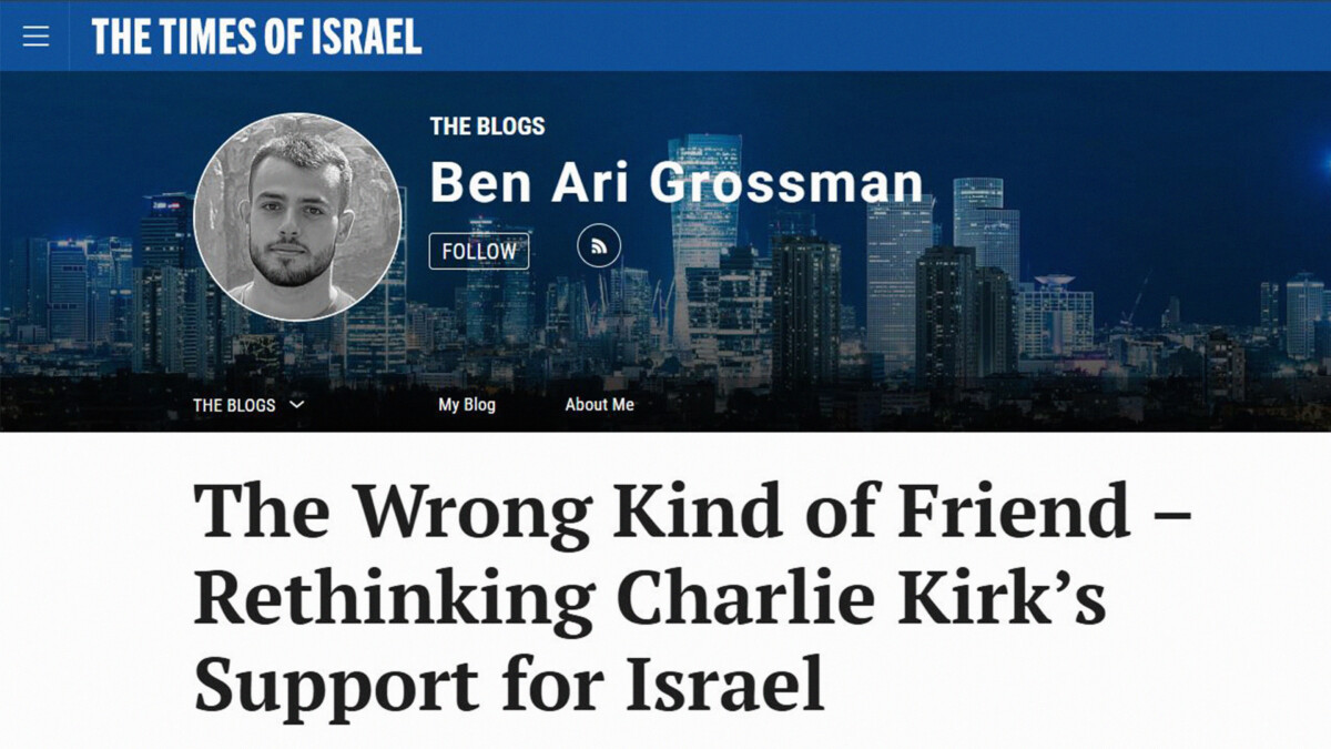 On September 13, 2025, the Times of Israel, a prominent Israeli newspaper, launched a vicious post-mortem attack on Charlie Kirk, assassinated just three days earlier on September 10, 2025.