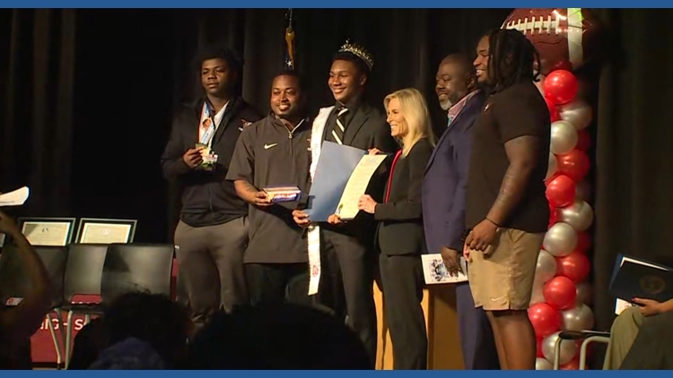 Shortly after Deegan’s speech, a representative with the Jacksonville Jaguars presented Head Coach Donovan Masline with two tickets to Super Bowl LX.