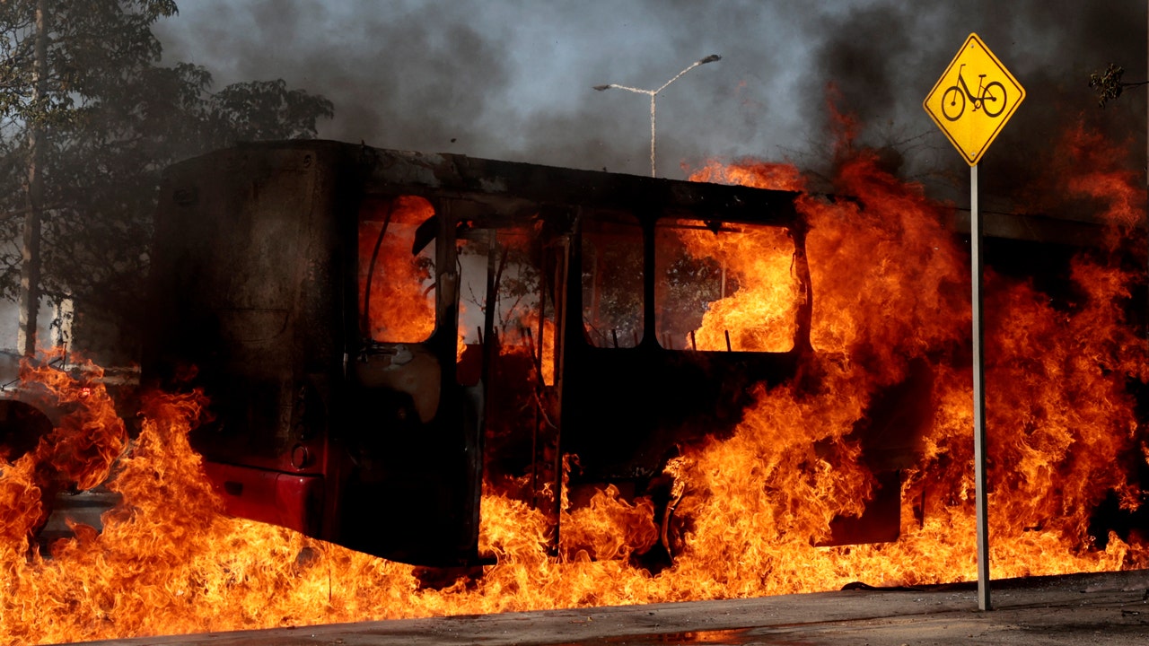 Burning bus in Jalisco.