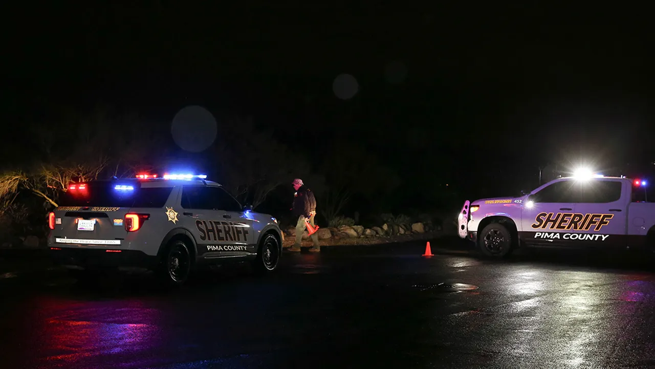 The Pima County Sheriff’s Department conducts a law enforcement operation at the intersection of Camino de Michael and East Orange Grove Road in Tucson, Ariz. (DWS for Fox News Digital)