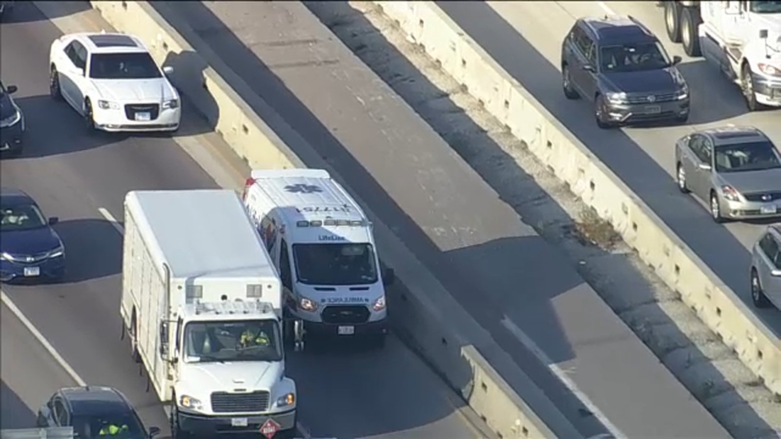 The ambulance was driving south on I-294, north of Ogden Avenue, when it got stuck in traffic.
