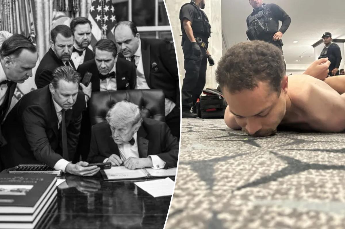 Trump would post security footage from the Washington Hilton and an image of the shirtless suspect detained by authorities on Truth Social minutes later.
