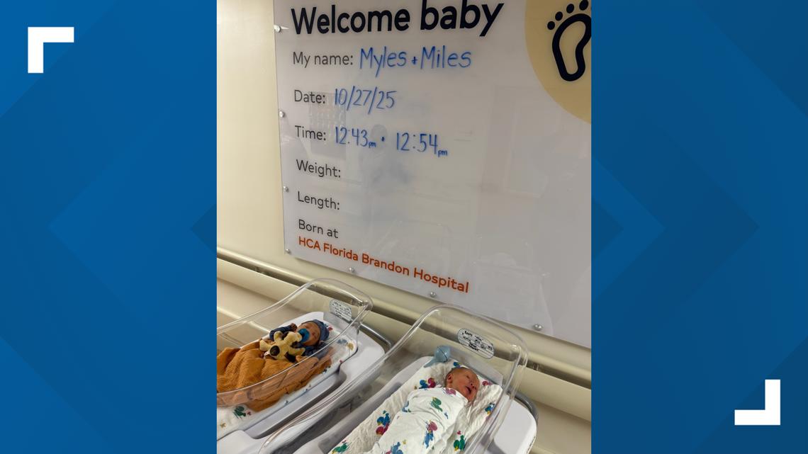 BRANDON, Florida — On an October day at a Hillsborough County hospital, two families, previously strangers, welcomed baby boys sharing the same name. Within mere minutes, these newborns made their entrance at HCA Florida Brandon Hospital, creating a unique connection.