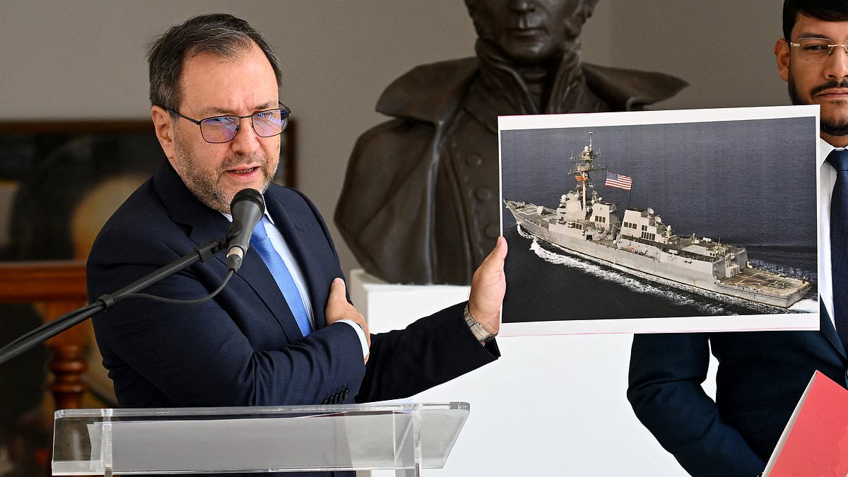 Gil (center) noted that those who ordered the ‘illegitimate’ seizure – during which he presented video footage of the incident – ‘are looking for an incident to justify escalating war in the Caribbean, with the aim of regime change in Caracas’