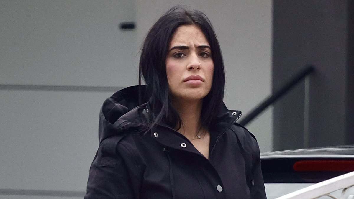 She was seen dressed in all black, wearing tracksuit pants, and a long hooded jacket after she emerged on her parents’ driveway.