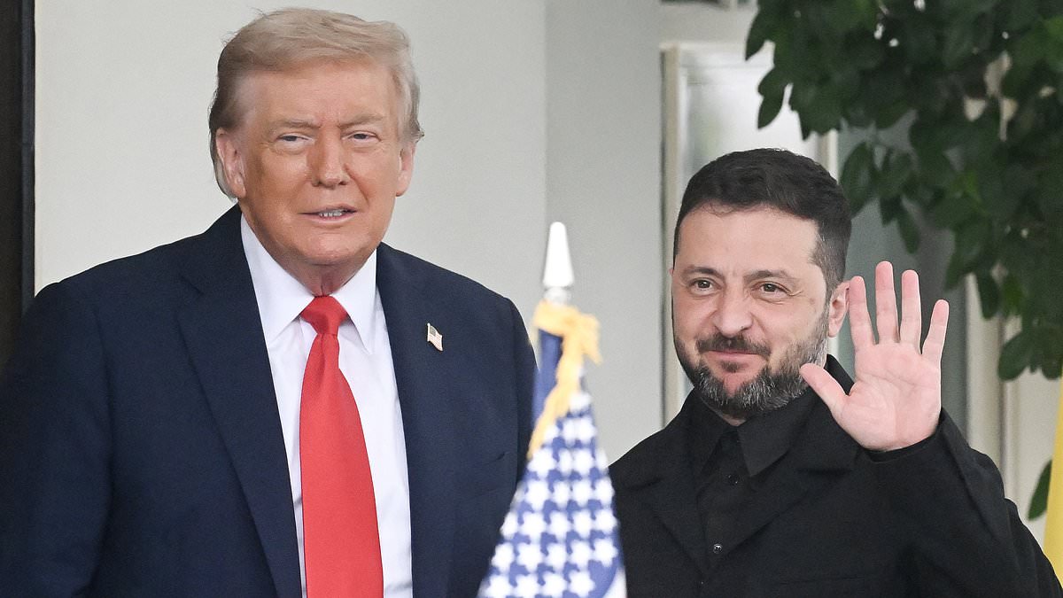 President Donald Trump (left) greets Ukrainian President Volodymyr Zelensky (right) outside the West Wing in August – the second meeting the president had with Zelensky of his second term