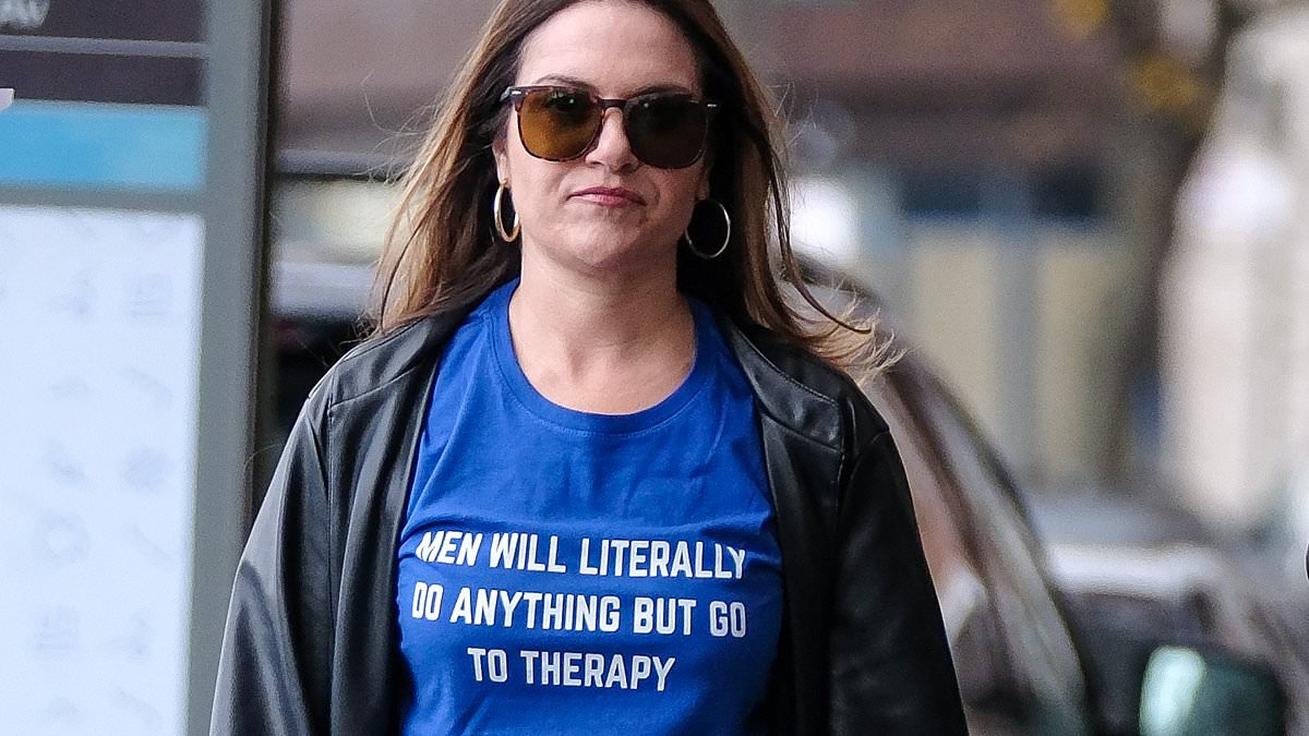 Bill de Blasio’s ex-girlfriend Nomiki Konst was captured by the Daily Mail wearing a T-shirt Thursday that read: ‘Men will literally do anything but go to therapy’