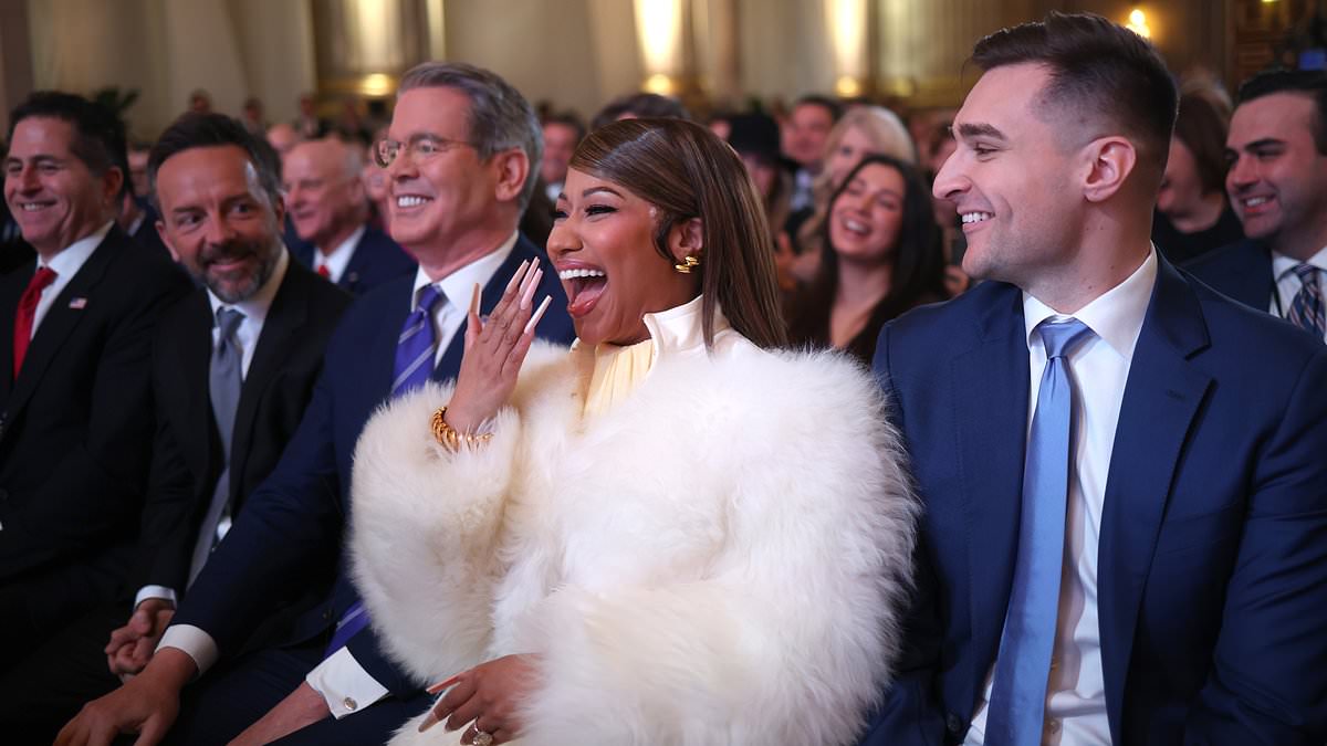 Minaj addressed the criticism she has faced for her support of Trump, stating it only strengthens her resolve. “We’re not going to let them get away with bullying him, and, you know, the smear campaigns – it’s not going to work, OK? He has a lot of force behind him, and God is protecting him. Amen?” she concluded passionately. Trump, visibly appreciative, thanked her quietly. Minaj was seated beside Treasury Secretary Scott Bessent and Trump advisor Alex Bruesewitz during the event, which took place in a chilly, snow-dusted DC. On stage, Minaj and Trump shared a handshake and stood together with O’Leary as he delivered brief remarks. Known for her extravagant style, Minaj sported chrome-colored, long acrylic nails, which were noteworthy given Trump’s history of hand injuries, including a previous incident involving Pam Bondi at the 2024 Republican National Convention.