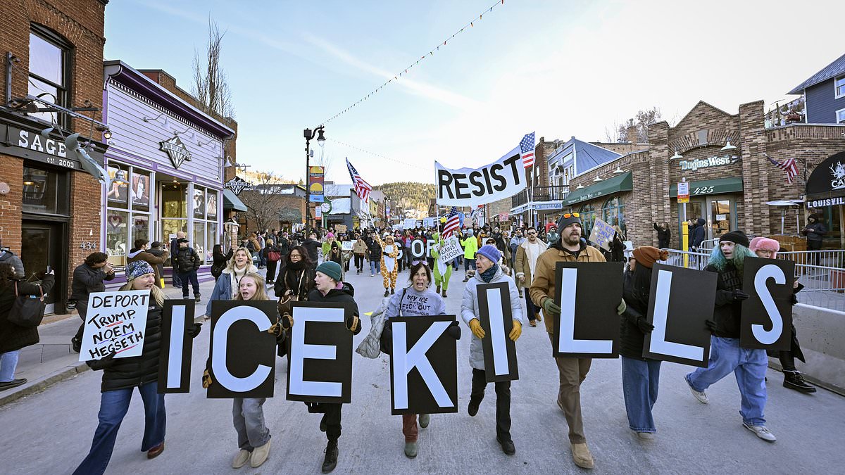 One of many protests against Immigration and Customs Enforcement, this one during the Sundance Film Festival in Park City, Utah, on Monday, on the heels of Alex Pretti’s death on Saturday. New polling shows dire numbers for ICE and the immigration agenda in its aftermath