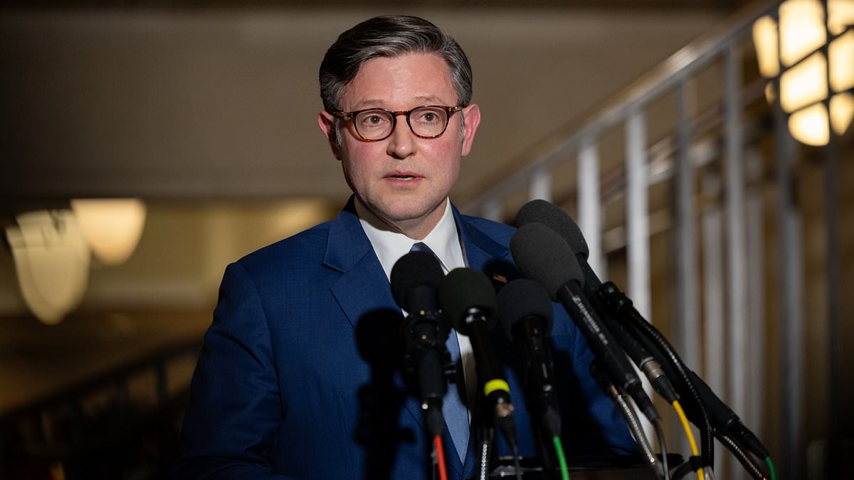 Speaker of the House Mike Johnson (R-LA) speaks to the press following a briefing by members of the Trump administration on U.S. operations in Venezuela, at the U.S. Capitol in Washington, DC on January 5, 2025
