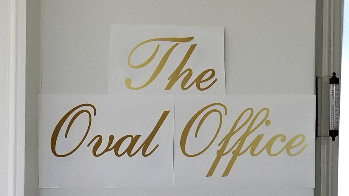 Initially, what appeared to be three sheets of decal paper, adorned with gold cursive letters spelling ‘The Oval Office,’ were taped outside the White House. This detail seemed to perfectly match President Trump’s renowned opulent style.