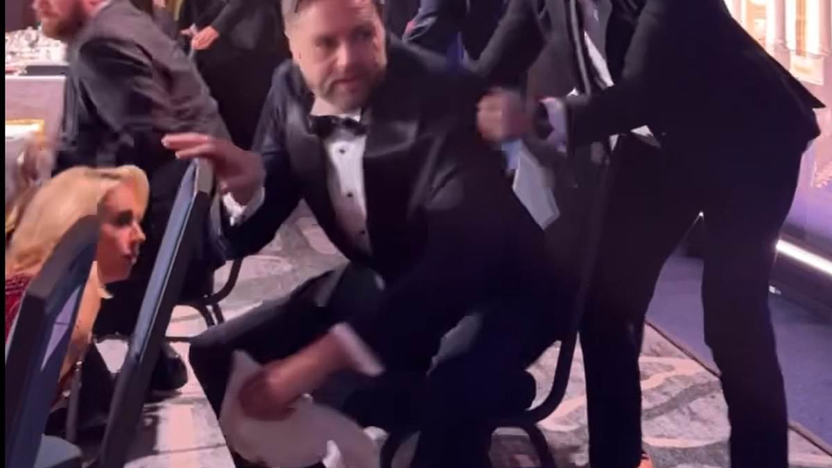 Footage from the dinner shows that Secret Service agents grabbed Vance by his shoulders and pulled him away from the stage just second after shots rang out.