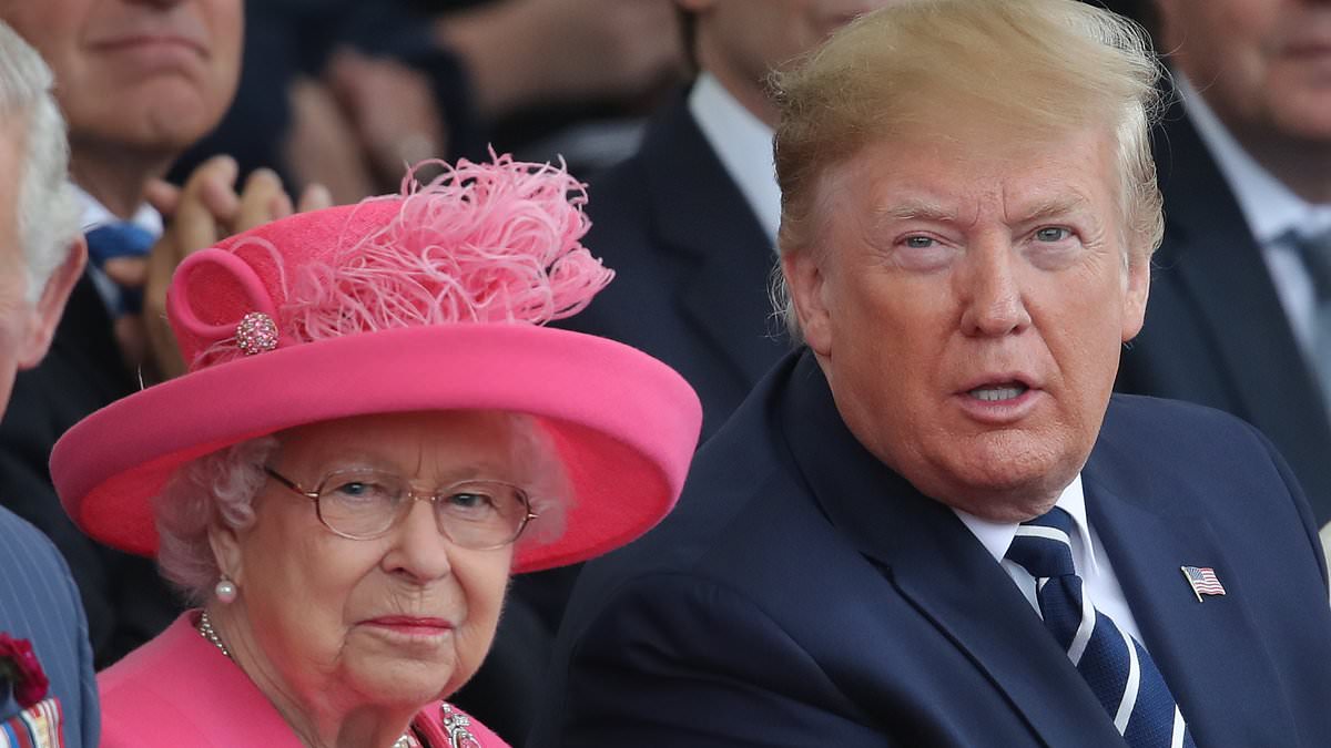 Queen Elizabeth and Donald Trump are depicted reviewing the Guard of Honor at Windsor Castle in July 2018. He remarked that meeting the late monarch was among the most memorable experiences of his tenure as president.