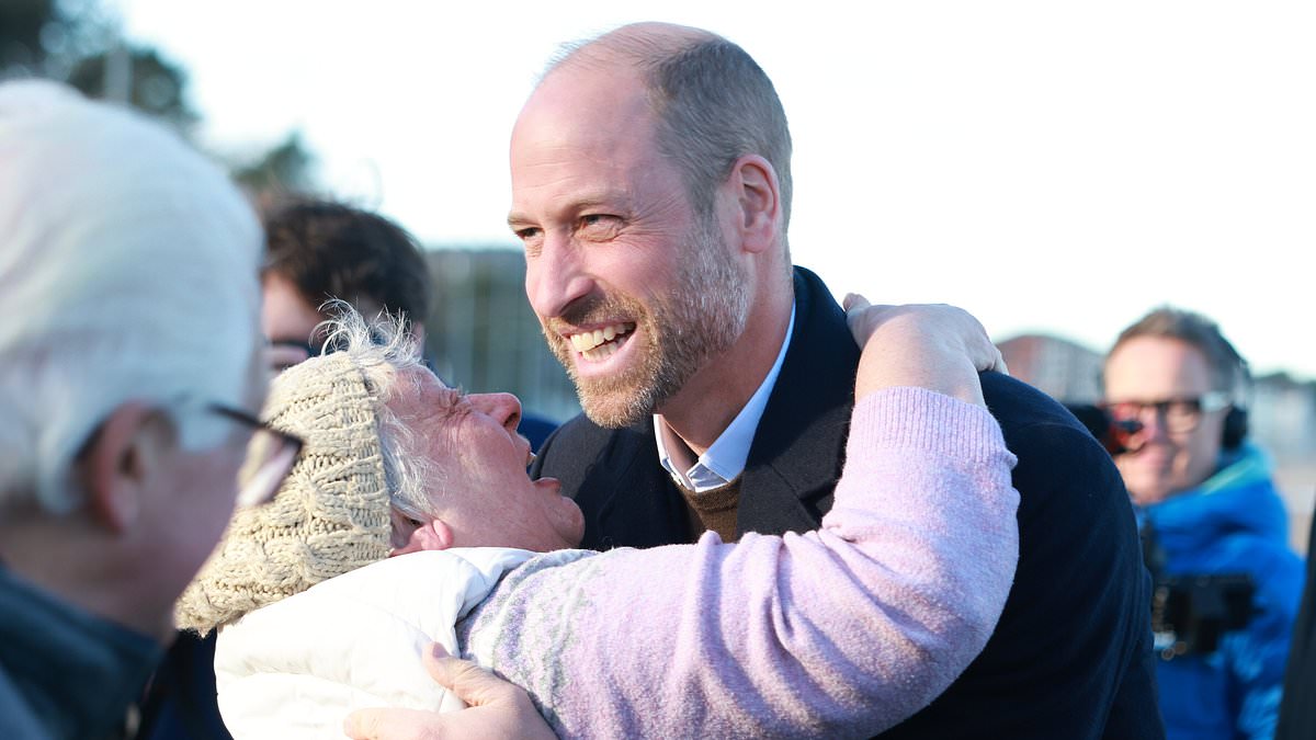 Today, William was hugged by Angela Jones from Conwy, a member of the public who had eagerly turned out to greet him.