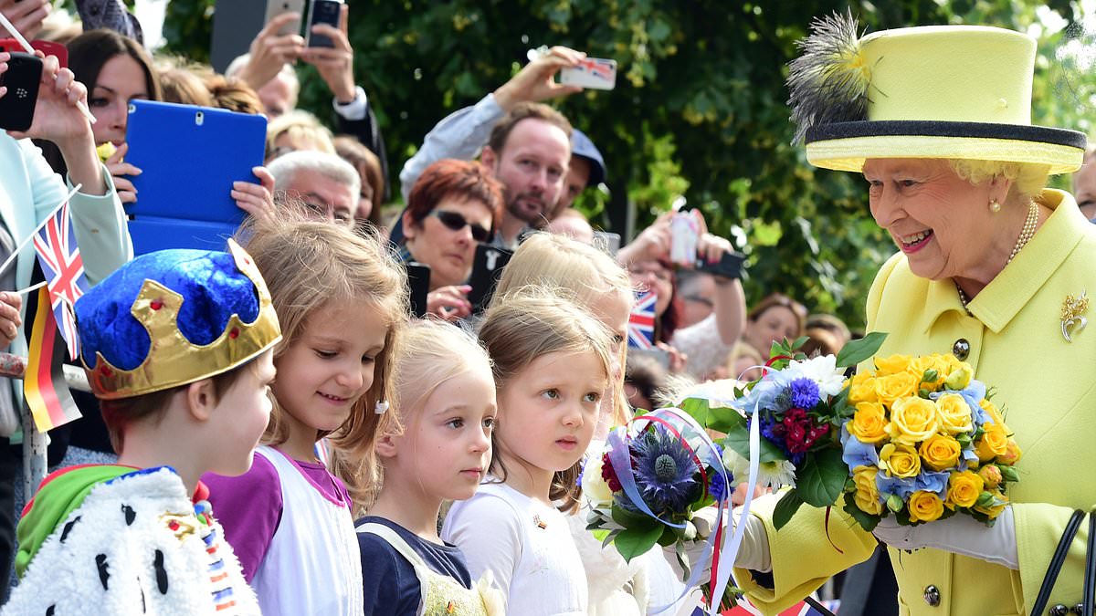 Young children hold a ‘We love UK’ sign for Queen Elizabeth II in the German city of Celle