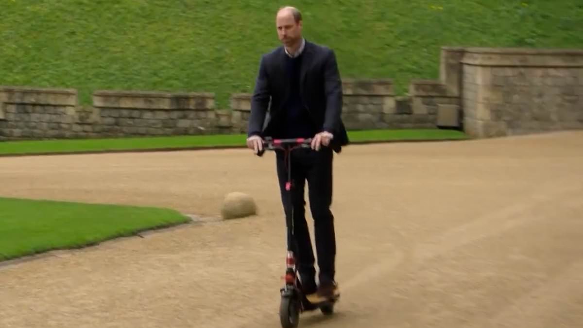A clip of Prince William riding an electric scooter on the grounds of Windsor Castle has delighted royal watchers.
