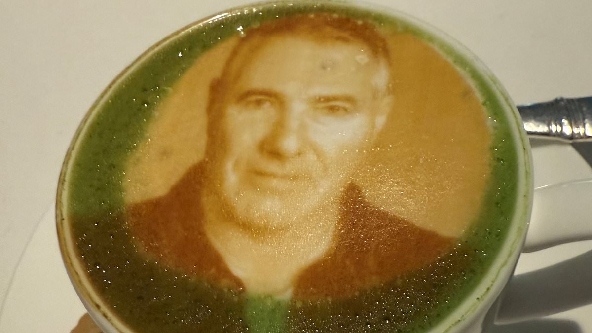 Mug shot: He was treated to a post-prandial cappuccino with his own ‘photorealistic’ portrait on top of the frothy white foam