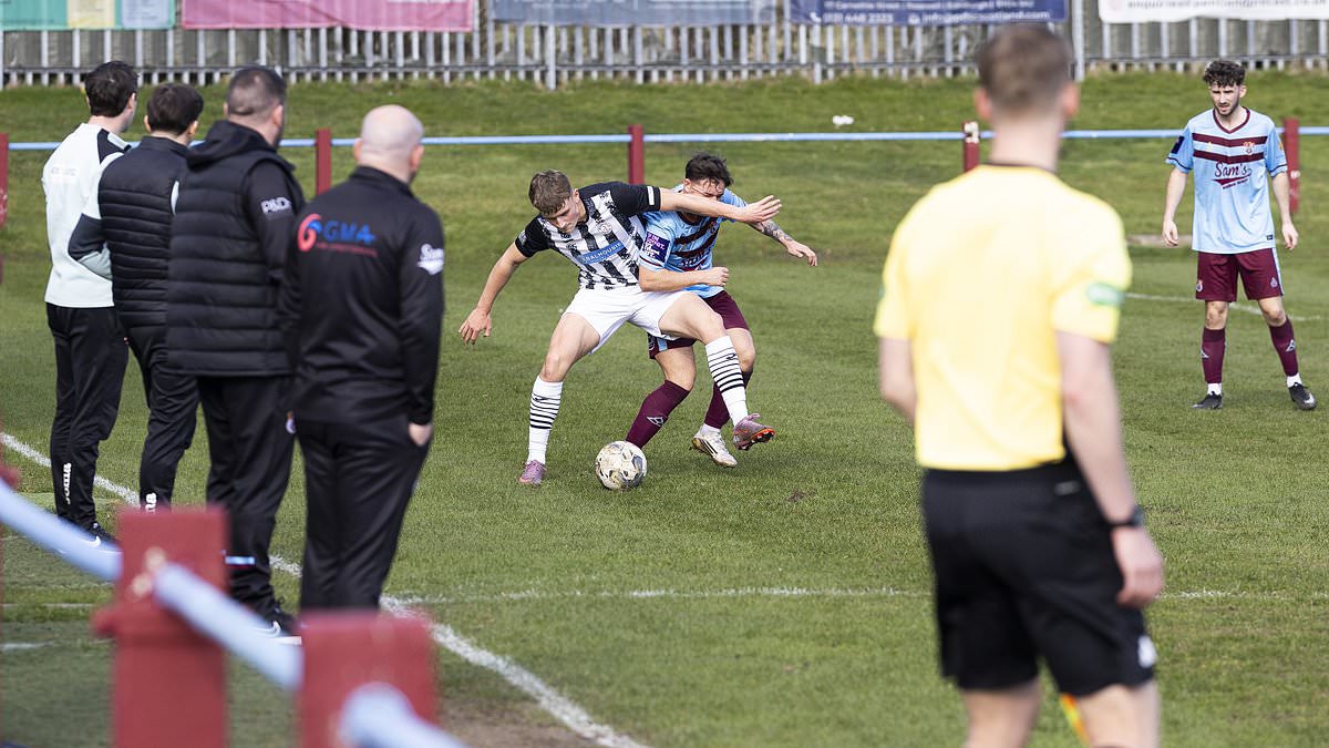 Jeanfield Swifts score their third goal in the 4-1 win over Whitehill Welfare